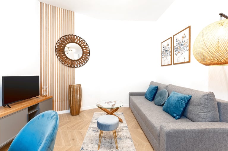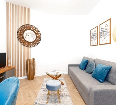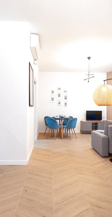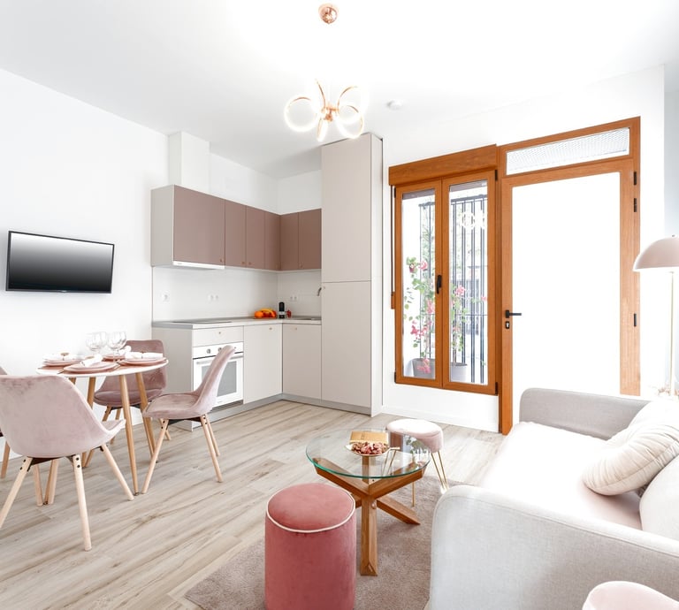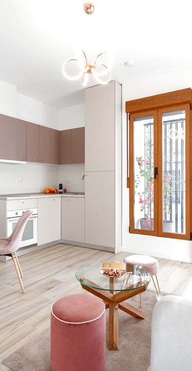 Step into La Vie en Rose, where elegance meets warmth in a dreamy blend of soft rose tones and golden accents. This apartment is a love letter to beauty and comfort — ideal for couples or solo travelers who appreciate life’s finer touches. Whether you're sipping cava on the balcony or relaxing beneath linen canopies, every detail is designed to lift your spirit. Feminine, cozy, and quietly luxurious — this is your pink-hued sanctuary by the sea.